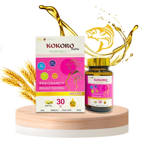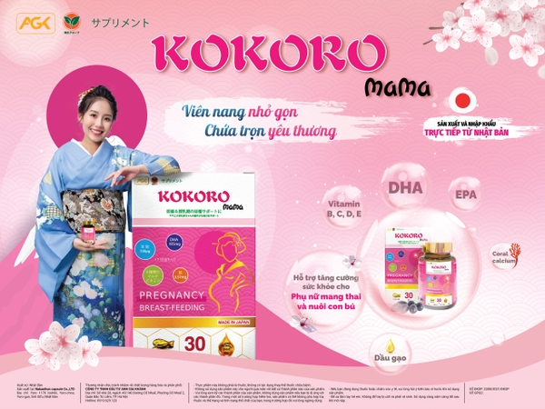 Vitamin tổng hợp KOKORO mama là sự kết hợp của hơn 18 loại vitamin và khoáng chất thiết yếu, cung cấp hàm lượng dinh dưỡng đa dạng và đầy đủ các chất thiết yếu trong thời kỳ mang thai của mẹ bầu. Sản phẩm được sản xuất tại nhà máy với 25 năm kinh nghiệm nổi tiếng tại Nhật Bản với tiêu chí chọn lựa nguyên liệu đầu vào khắt khe, viên nang mềm tiện lợi, với hàm lượng DHA 185mg/viên vô cùng cao kết hợp cùng dầu gạo (dưỡng chất quan trọng và mới) trong thực phẩm tốt cho tim mạch của thai nhi. Sản phẩm cũng đang hiện có bán tại các Hệ thống Nhà thuốc/ quầy thuốc/ siêu thị đồ Nhật cho mẹ và bé/ Phòng khám sản khoa trên toàn quốc tại Việt Nam.